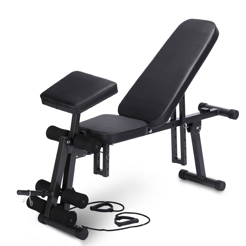T1多功能健身器材家用仰卧板收腹机哑铃凳仰卧起坐板折叠 健身椅 进口格子皮八档调节 承重500斤