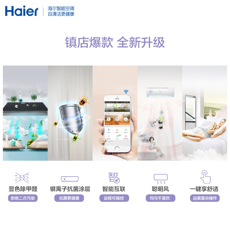 商品名称:Haier/海尔 KFR-33GW/10EBBAL13U1 1.5匹智能壁挂式家用空调挂机 智能操控 快速冷暖 送装一体